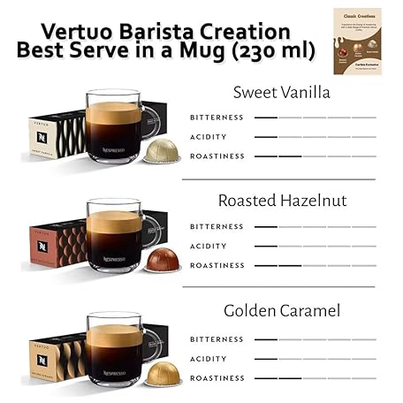 Thông tin sản phẩm Barista Creations Vertuo Capsules - 10 Vanilla, 10 Caramel, 10 Roasted Hazelnut Coffee Pods for Nespresso Vertuo Machines