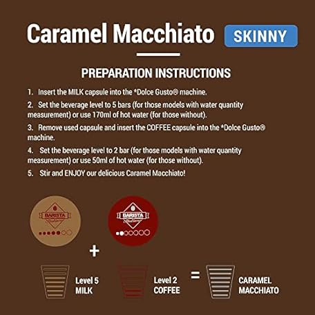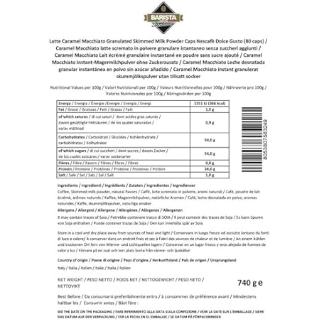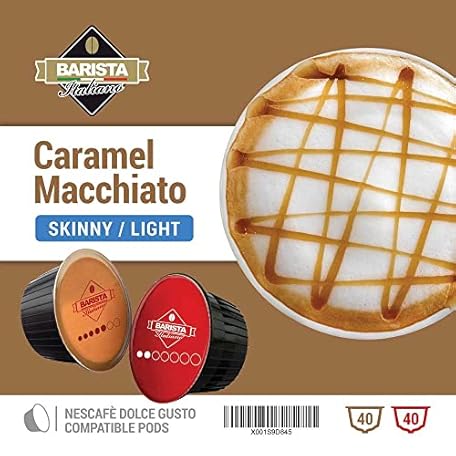 Sản phẩm Barista Italiano - Skinny Caramel Macchiato - 80 Pods Compatible with Dolce Gusto®* machines (80 Capsules, 40 Servings) đang được bán với giá ưu đãi là $37.2889 tại nước Anh.