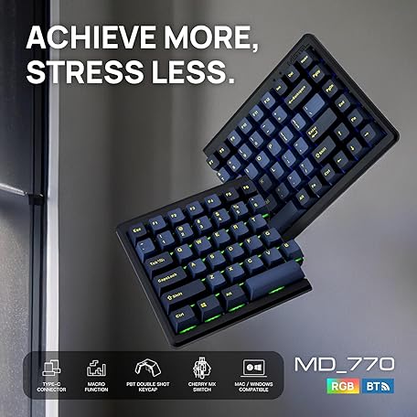 Thông tin sản phẩm BAROCCOMiSTEL MD770 RGB BT5.0 Glaze Blue TKL Ergonomic Mechanical Keyboard, 75% Split Layout, Cherry MX, PBT DoubleShot Keycap, Mac/Windows OS Compatible (Cherry Silver)