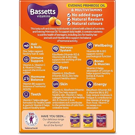 Sản phẩm Bassetts Vitamins 12-18 Years Evening Primrose Oil Orange & Passion Fruit Flavour Multivitamins 30 Gummies đang được bán với giá ưu đãi là $10.1697 tại nước Anh.