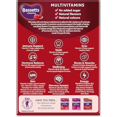 Thương hiệu BASSETTS VITAMINS là cái tên nổi tiếng được rất nhiều khách hàng trên thế giới chọn lựa. Với kiểu dáng đẹp mắt, sang trọng, sản phẩm Bassetts Vitamins Adult Raspberry & Pomegranate Flavour Multivitamins 30 Gummy Pastilles là sự lựa chọn hoàn hảo nếu bạn đang tìm mua một món cho riêng mình.