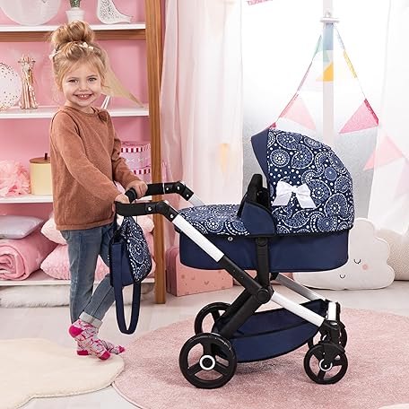 Thông tin sản phẩm Bayer Design 17073AB Dolls pram XEO, doll stroller, carriage pram with bag, convertible, height-adjustable, Blue