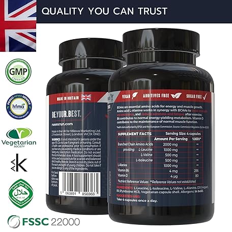 Sản phẩm BCAA Capsules 3000mg - 120 Capsules - High Strength Advanced Essential Amino Acids - Pre Workout Energy, Muscle Strength, Faster Recovery - Easy-to-Swallow Vegan BCAAs Tablets (not Powder) 30 Servings đang được bán với giá ưu đãi là $20.5138 tại nước Anh.