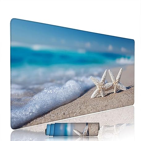 Beach Mouse Pad Large Gaming Keyboard Pads 35.4x15.7x0.12 inch Computer Full Desk Mat Waterproof with Rubber Base Non-Slip xxl Landscape Laptop Mat Gaming Accessories with Stitched Edges w-11947