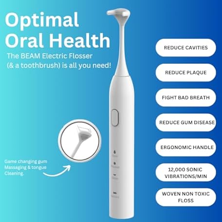 Thông tin sản phẩm Beam Electric Dental Flosser for Teeth - Flossing Dental Care in 3 Minutes, Superior to Dental Floss, Water Flossing or Floss Sticks Includes 3 Months of Floss Heads