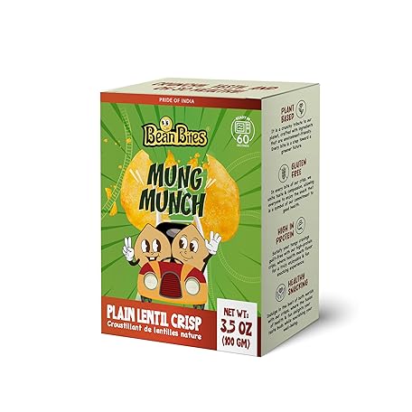 Thông tin sản phẩm Bean Bites | Mung Munch Lentil Crisp 3.53 oz (100 g) | Round Crunchy Bites | Classic Savory | Plant Based Vegan Crackers, Gluten-Free Healthy Snack, Keto Chips By Pride of India