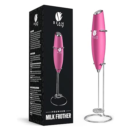Bean Envy Milk Frother for Coffee - Handheld, Mini Electric Drink Mixer, Foamer & Frother with Stand for Coffee, Lattes, Hot Chocolates and Shakes - Raspberry