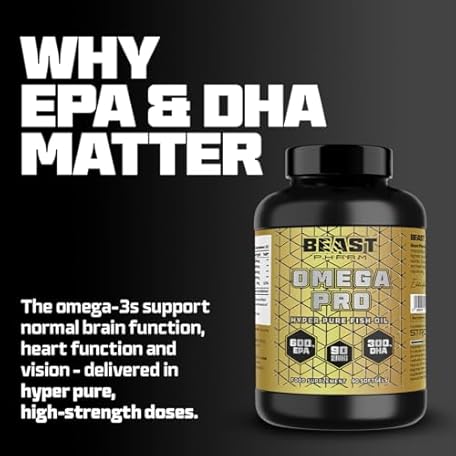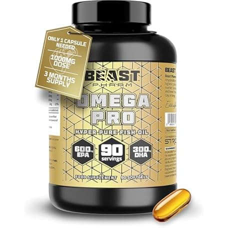• BEAST Pharm | Omega 3 Capsules Triple Strength Single Capsule Serving 1000 mg (3 Months Supply) Omega 3 Fish Oil Capsules 600 mg EPA, 300 mg DHA per Softgel