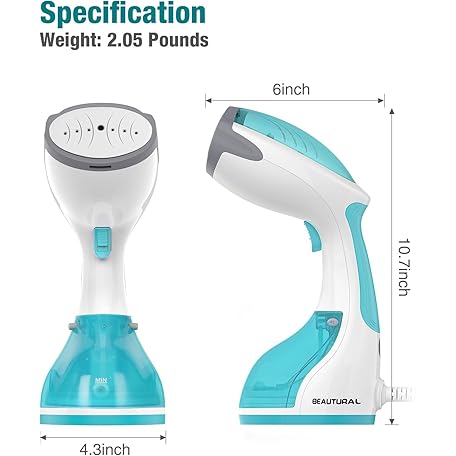 Thông tin sản phẩm BEAUTURAL Clothes Steamer, Portable Handheld Steamer, Garment Fabric Wrinkles Remover, 30-Second Fast Heat-up, Auto-Off, Large Detachable Water Tank