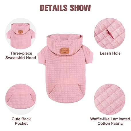 Sản phẩm BEAUTYZOO Small Dog Hoodie Sweater with Pockets, Dog Clothes for Small Medium Dogs Boy Girl, Waffle-like Laminated Cotton Pet Coats with Hat and Leash Hole, All Weather Coat for Puppy Doggie Chihuahua đang được bán với giá ưu đãi là $14.3226 tại nước Anh.