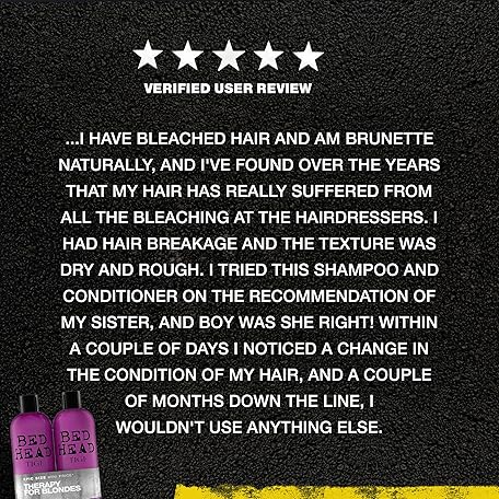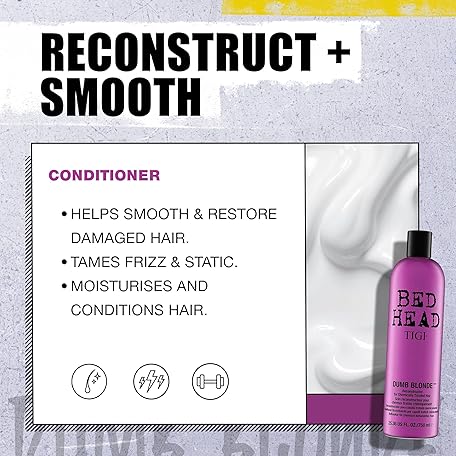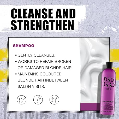 Thông tin sản phẩm Bed Head by TIGI Dumb Blonde 750ml Shampoo and Conditioner Set – Professional Repair Treatment for Bleached Hair, Moisturising Keratin Formula Treats Dry, Damaged Hair, Daily Sulphate Free Colour Care