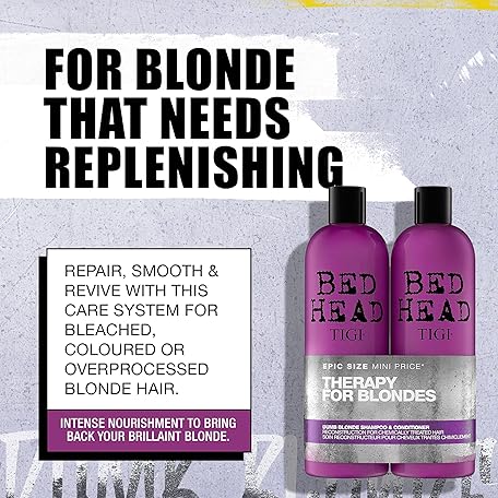 Sản phẩm Bed Head by TIGI Dumb Blonde 750ml Shampoo and Conditioner Set – Professional Repair Treatment for Bleached Hair, Moisturising Keratin Formula Treats Dry, Damaged Hair, Daily Sulphate Free Colour Care đang được bán với giá ưu đãi là $25.5496 tại nước Anh.