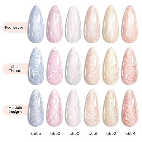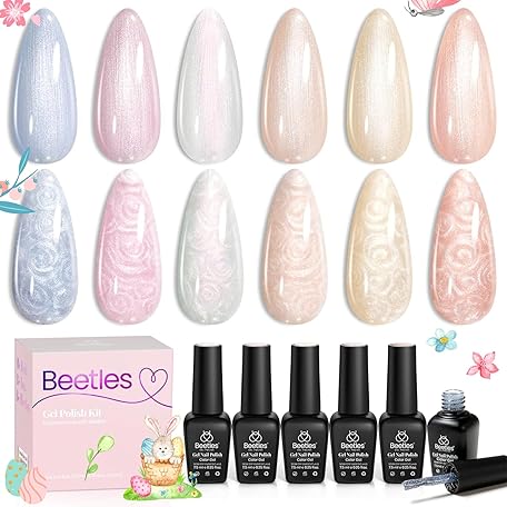 beetles Gel Polish Beetles Gel Nail Polish,6 Colors Pearl Shimmer Mermaid Gel Polish White Pink Blue Glitter Shell Swirl Thread Effect Soak Off UV LED Gel for Salon Home DIY Manicure Valentines Gifts for Her