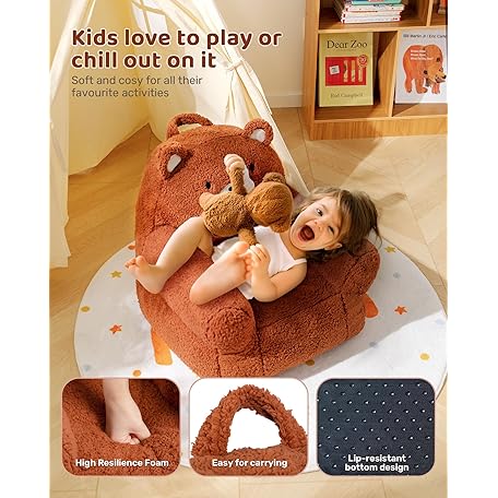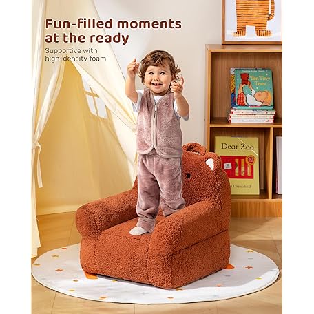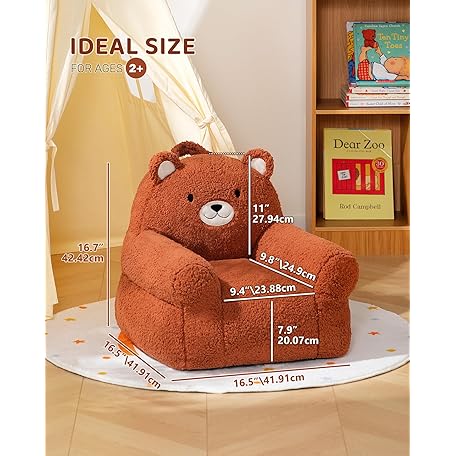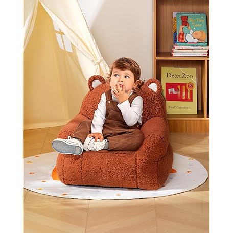 Thông tin sản phẩm BEJOY Comfy Toddler Chair, Foam Filled Kids Sofa, Single Cuddly Sherpa Reading Couch for Boys and Girls, Bear
