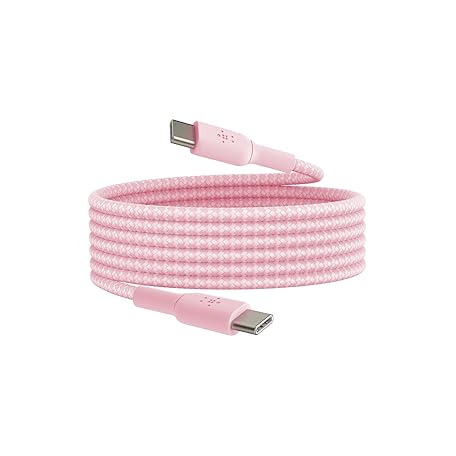 Belkin BoostCharge (2M/6.6ft) Braided USB-C to USB-C Cable for iPhone 16, Galaxy S24, S23, Note10, Note9, Pixel 8, Pixel 7, iPad Pro & More - Pink