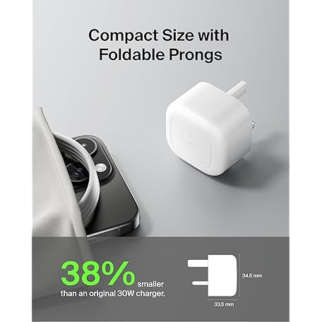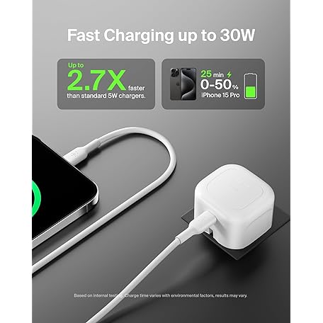 Thông tin sản phẩm Belkin BoostCharge Compact Wall Charger 30W, Travel-friendly USB-C Power Delivery Fast Charging for Apple iPhone 17, Air, 16, 15, 14, Samsung Galaxy S25, Pixel, iPad, AirPods, Tablet & More - White