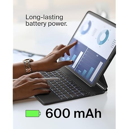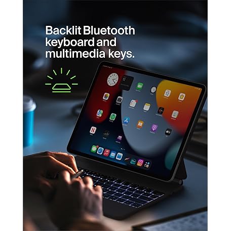Thông tin sản phẩm Belkin Pro iPad Keyboard Case with Magnetic Stand, Backlit Bluetooth Keyboard, Multi-gesture Controls, Apple Pencil Storage, Leather case, QWERTY, Multimedia Keys for iPad M4 Pro 13”