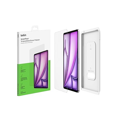 Belkin ScreenForce TemperedGlass screen protector for iPad Air 13-inch, 9H hardness rating tempered glass, 0.33mm thin, scratch-resistant with easy installation, compatible with case and Apple Pencil