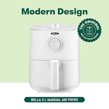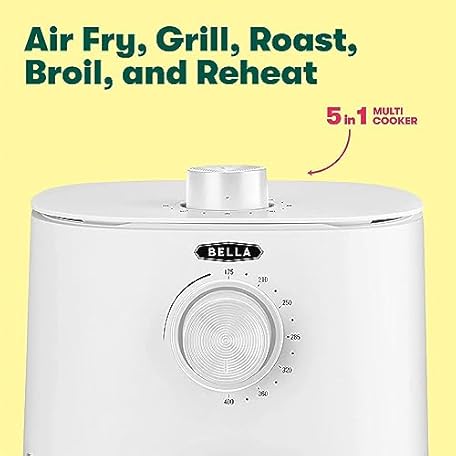 Thông tin sản phẩm BELLA 3 L Manual Air Fryer Oven and 5-in-1 Multicooker with Removable Nonstick and Dishwasher Safe Crisping Tray and Basket, 1400 Watt Heating System, Matte White