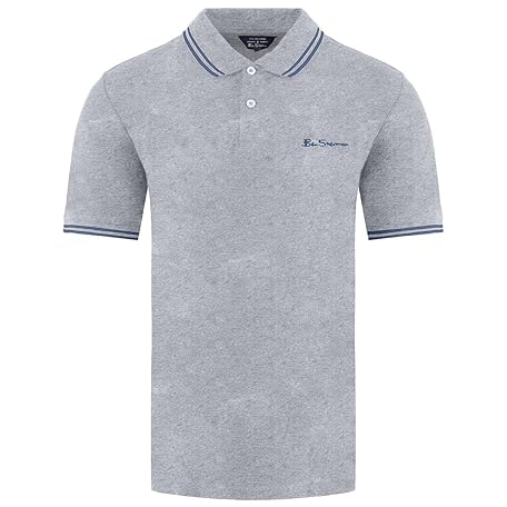 Ben Sherman Short Sleeve Collared Grey Twin Tipped Mens Polo Shirt 0074604G 009, ()
