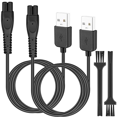BENACES 3Ft Shaver Charger Cord, 2 Pack 5V Electric Shaver USB Charging Cable, 24AWG Trimmer Razor Power Cord with Fishbone-Reinforced Cable Boot Design, for Philips Norelco Shaver QP2724, QP2834