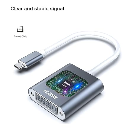 BENFEI USB C to DVI Adapter, Type-C to DVI Adapter [Thunderbolt 3 Compatible] for MacBook Pro 2018/2017, MacBook Air/iPad Pro 2018, Samsung Galaxy S10/S9, Surface Book 2 and More - Grey