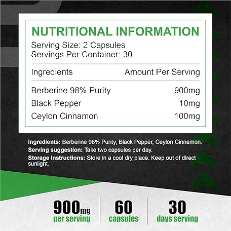 Thông tin sản phẩm Berberine Capsules - Pack of 60 | Premium Berberine Supplement - High Strength Supplement | Supports Healthy Cholesterol Levels, Blood Sugar Balance & Digestive Health | Natural Berberine Formula