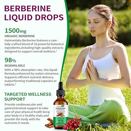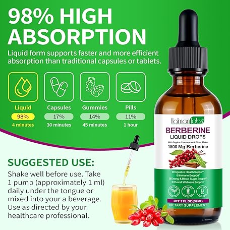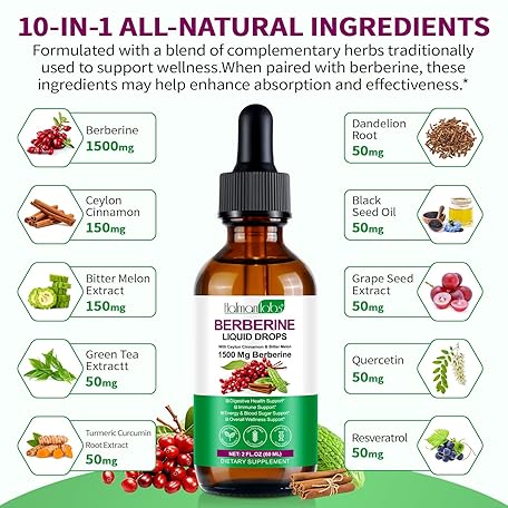 Thông tin sản phẩm Berberine Liquid Drops, Berberine Supplement High Strength, 100% Absorption, Aids Blood Sugar Balance, Natural Ingredients, Pineapple Flavour, 60ml