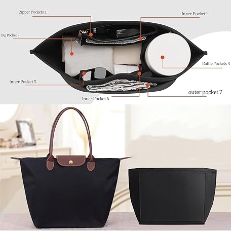 Sản phẩm Berelin Bag Insert Organizer, Purse Insert Organizer With Zipper,Multi-Pocket Felt Handbag Organizer for Insert Wallet Organizer, Folding Tote Bag organizer insert for Longchamp (Black, L) đang được bán với giá ưu đãi là $19.1295 tại nước Anh.