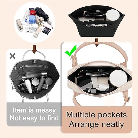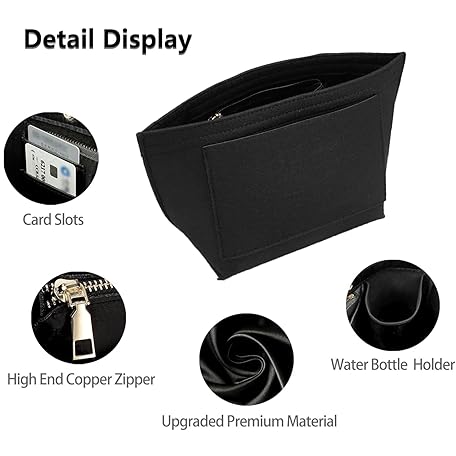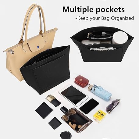 Thông tin sản phẩm Berelin Bag Insert Organizer, Purse Insert Organizer With Zipper,Multi-Pocket Felt Handbag Organizer for Insert Wallet Organizer, Folding Tote Bag organizer insert for Longchamp (Black, L)