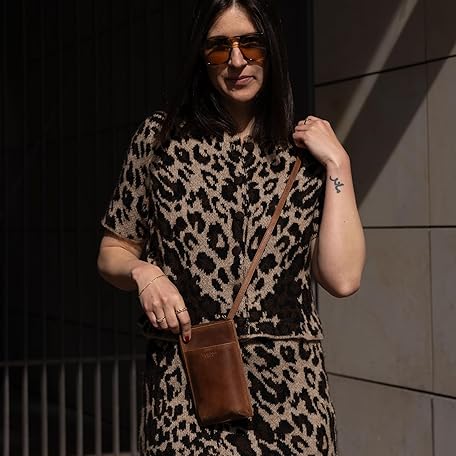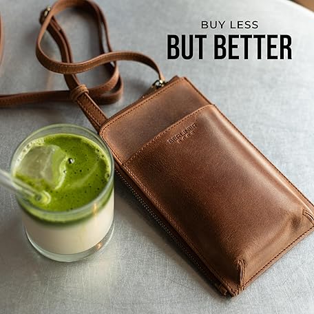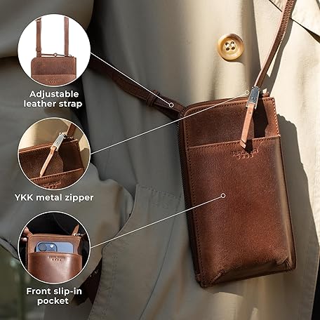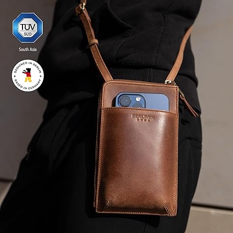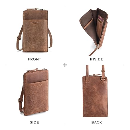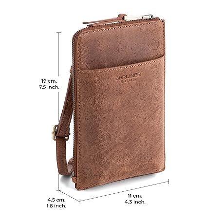 Thông tin sản phẩm BERLINER BAGS Vintage Genuine Leather Cell Phone Bag Kim, Small Crossbody Shoulder Bag - Brown, Camel