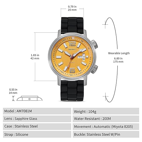 Sản phẩm BERNY Automatic Mechanical Dive Watch for Men Self Winding Sport Wristwatches Waterproof 20ATM Sapphire Glass Scratch Resistant Super Luminous đang được bán với giá ưu đãi là $161.9522 tại nước Anh.