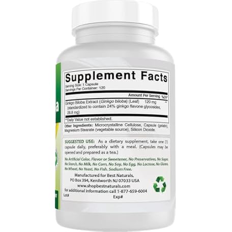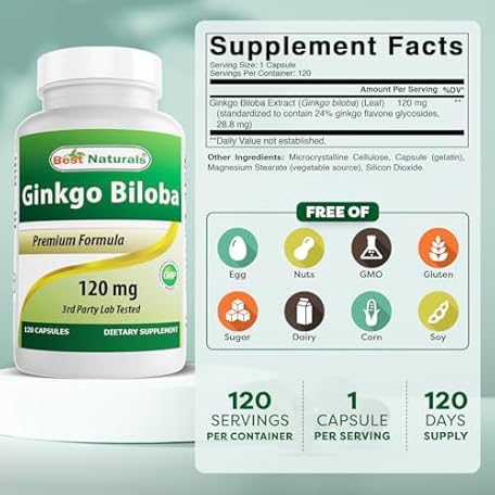 Thông tin sản phẩm Best Naturals Ginkgo Biloba Extract - Double Strength Ginkgo Biloba, 120mg, 120 Capsules (120 Count (Pack of 1))