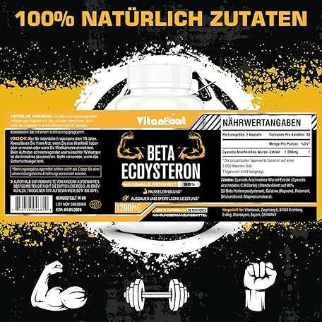Thương hiệu Vitanboost là cái tên nổi tiếng được rất nhiều khách hàng trên thế giới chọn lựa. Với kiểu dáng đẹp mắt, sang trọng, sản phẩm Beta Ecdysterone Supplement 1200mg | Increases Lean Muscle Mass, Exercise Performance, Strength and Protein Synthesis, 98% Maximum Purity Formulated for Enhanced Absorption 60 Capsules|1 Month Supply  là sự lựa chọn hoàn hảo nếu bạn đang tìm mua một món  cho riêng mình.