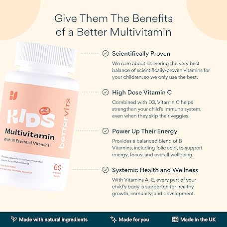Sản phẩm Bettervits Kids Multivitamin Gummies | Children’s Multivitamins with Vitamins A, C, D, E, K, B-Complex | Chewable Vitamins for Kids 10–16 Years | for Immune Support & Daily Nutrition | 60 Count đang được bán với giá ưu đãi là $35.8719 tại nước Anh.