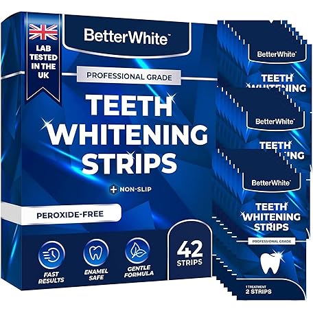 Sản phẩm BetterWhite Professional Teeth Whitening Strips 21 Treatments - Enamel Safe - Non-Sensitive Formula - 42 Peroxide-Free Strips - Dentist Formulated Teeth Whitening Kit + Mouth Opener Included đang được bán với giá ưu đãi là $29.7461 tại nước Anh.