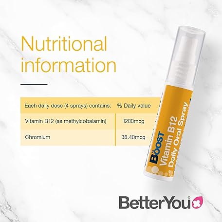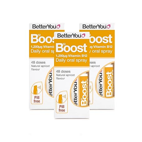 Thông tin sản phẩm BetterYou Boost Vitamin B12 Daily Oral Spray Vitamin Spray Supplement for Energy Boost 1,200 IU Vitamin B12, Natural Apricot Flavour, Pack of 3, 25ml (192 Sprays)