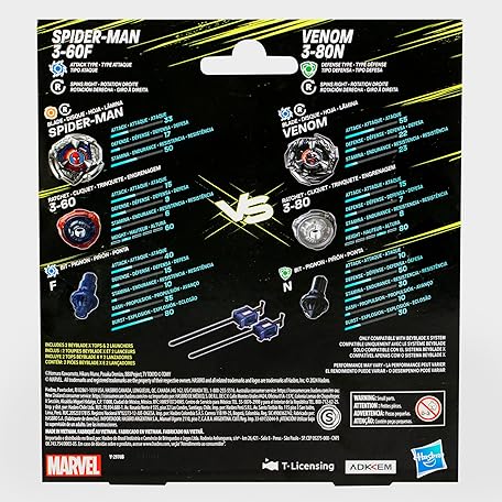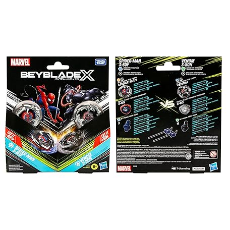 Thông tin sản phẩm Beyblade X Marvel Collab Spider-Man 3-60F vs. Venom 3-80N Multipack Set, Includes 2 Right-Spin Tops & Launchers, Spinning Toys for Kids 8+, Boys and Girls