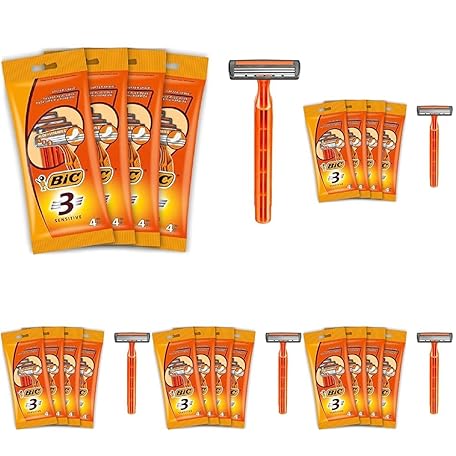 BIC 3 Sensitive, Men's Disposable Razors, Fixed Head Triple Blade for a Close Shave, Bundle of 20 Packs of 4