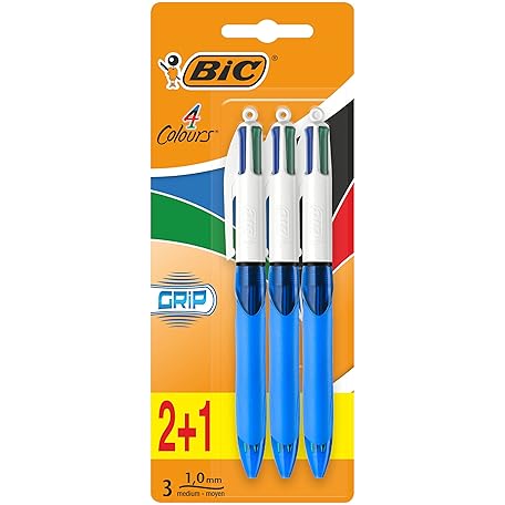 BIC 4 Colours Retractable Ballpoint Pens, Medium Point (1.0 mm) Every-Day Writing Pens with Extra Comfort Grip, Blue, Pack Of 3
