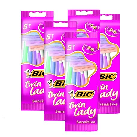 Bic Twin Lady Sensitive Razors - Twin Blade Smooth Shave Razor, Gentle Sensitive Skin Razors, Disposable & Easy Glide Hair Removal Shaving Razor for Body