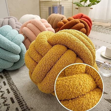 Sản phẩm Bigougem Knot Ball Pillow, Knotted Ball Throw Pillow Ultra Soft Companionship Decorative Hand-woven Knotted Ball Lamb Velvet Sofa Cushion, Knot Cushion, Sofa Pillow Yellow đang được bán với giá ưu đãi là $20.4484 tại nước Anh.
