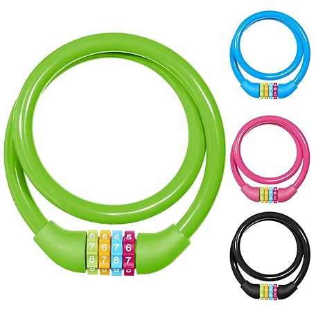 Bike Lock, 4-Digit Password Bicycle Lock, 65cm Portable Anti Theft Bike Password Lock, Resettable Combinations 4 Digits Codes Lock for Bike, Motorbike, Scooter, Skateboard, Gate, Fence (Green)