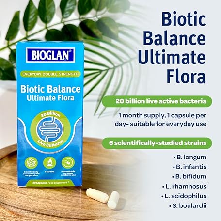 Sản phẩm Bioglan Biotic Balance Ultimate Flora | 20 Billion | CFU | 6 Strains | Live Bacteria | 30 Capsules đang được bán với giá ưu đãi là $17.1893 tại nước Anh.