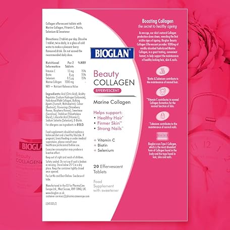 Sản phẩm Bioglan Collagen Effervescent | 1000mg | Hydrolysed Marine Collagen | Biotin | Selenium & Vitamin C | 20 Berry Flavoured Effervescent đang được bán với giá ưu đãi là $7.4011 tại nước Anh.