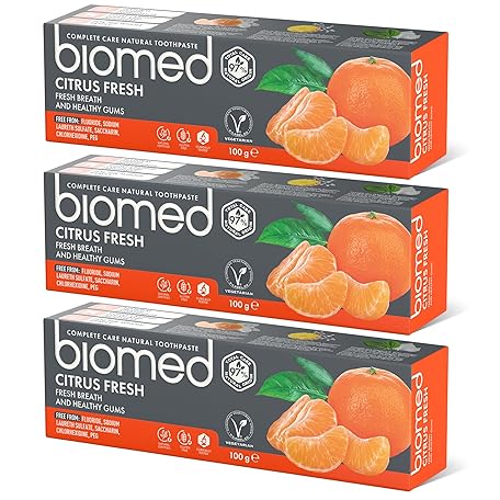 BIOMED Complete Citrus Fresh Toothpaste, 6+ Age, Gum Strength & Protection Against Caries, 98% Natural Ingredients, Fluoride & SLES-Free, Mandarin, Grapefruit, Lemon Flavour, 3 x 100g