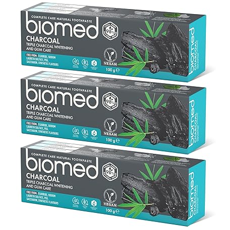 BIOMED Triple Charcoal 98% Natural Whitening Toothpaste | Gum Care, Bamboo Charcoal | Vegan, SLES Free 100g(pack of 3)