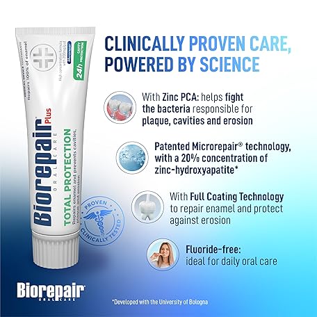 Thông tin sản phẩm Biorepair Plus Total Protection - Fluoride Free Hydroxyapatite Toothpaste, Repairs Enamel & Prevents Cavities Plaque and Erosion, Toothpaste for Sensitive Teeth - Oral Care, 3x75ml, Made in Italy