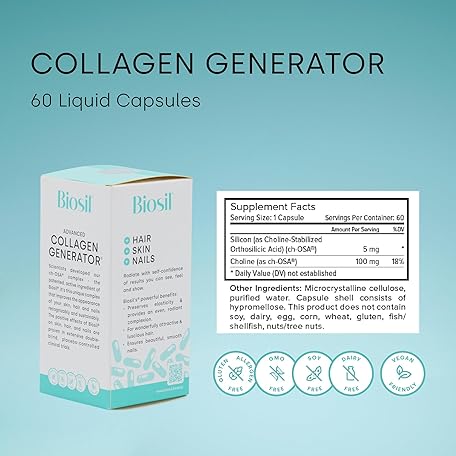 Thương hiệu Biosil là cái tên nổi tiếng được rất nhiều khách hàng trên thế giới chọn lựa. Với kiểu dáng đẹp mắt, sang trọng, sản phẩm Biosil Collagen Generator - 60 Liquid Capsules - with Patented ch-OSA Complex - Generates & Protects Your Own Collagen - GMO Free - 30-Day Supply là sự lựa chọn hoàn hảo nếu bạn đang tìm mua một món cho riêng mình.