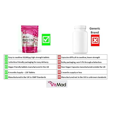 Thương hiệu Vitmad là cái tên nổi tiếng được rất nhiều khách hàng trên thế giới chọn lựa. Với kiểu dáng đẹp mắt, sang trọng, sản phẩm Biotin 10,000mcg High Strength Vitamins for Your Hair, Skin, Nails - 120 Tablets là sự lựa chọn hoàn hảo nếu bạn đang tìm mua một món cho riêng mình.